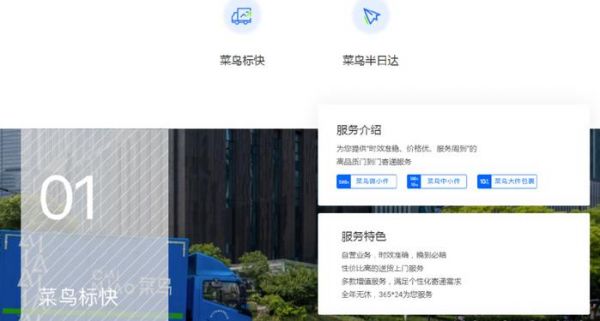 (菜鸟速递产品及服务介绍。截自菜鸟网络官网)