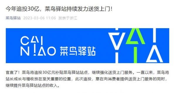 菜鸟自营快递又有新动作