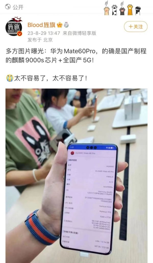 8月29 日午间, “ 华为手机 ” 官方微博 突然 宣布 Mate 60 的消息: