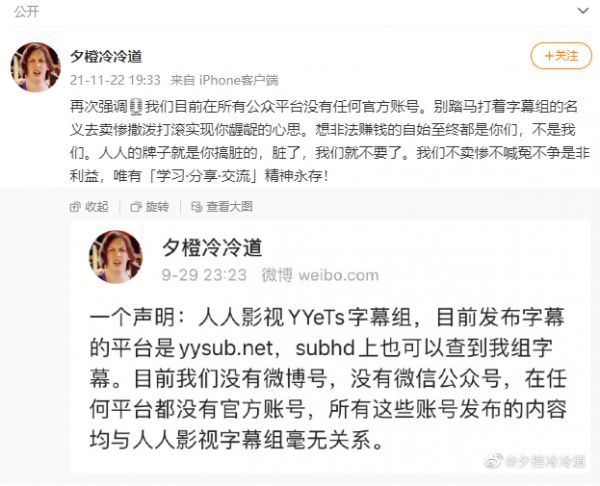 再加上2021年“人人影视”因涉嫌侵犯影视作品著作权被查处,14人被抓。被查处的人人影视,不只因侵犯版权,更关键的是利用盗版资源非法盈利,如收取会员费、广告费、售卖资源等。桩桩件件累积起来,更容易让站在局外的观众将字幕组和“盈利”关联起来。