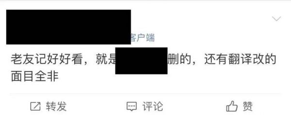 先是上架后又再下架,其次是再上架后的字幕译本是被阉割后的错误版本,关键剧情也被删得七零八落。其中最有代表性的便是《老友记》中重要角色Ross的前妻Carol几乎被删了个干净。于是大量剧迷又开始重新看起了“盗版资源”。