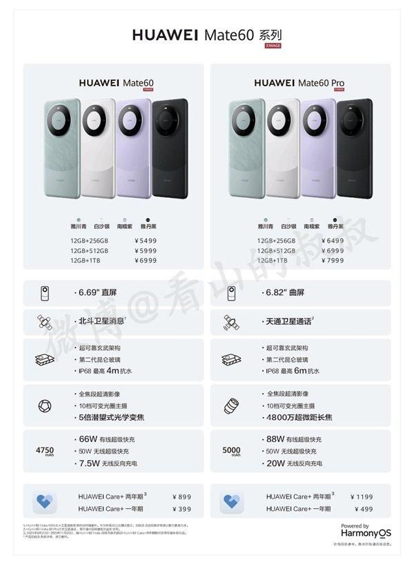 5499元起!华为Mate 60/Pro全版本配置、价格汇总:标配12GB内存 顶配1TB