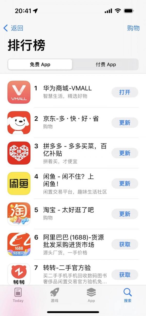 华为,都还遥遥领先于一众「购物类」App,就连下载榜总榜单上,华为都位列于Top5。