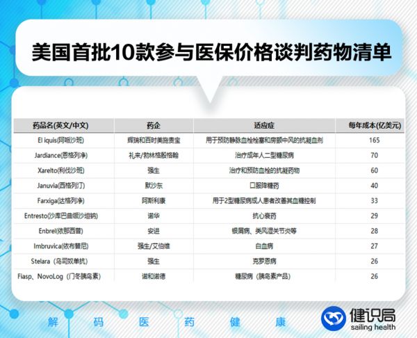 8月29日,美国医疗保险和医疗补助服务中心(CMS)公布了首次纳入医保价格谈判的10种药物清单,将正式开启美国版药品价格谈判。