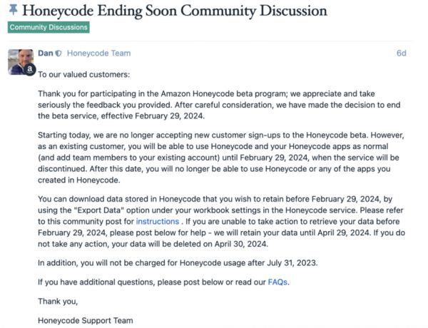https://devclass.com/2023/08/30/muted-response-speaks-volumes-as-aws-scraps-low-code-honeycode/
