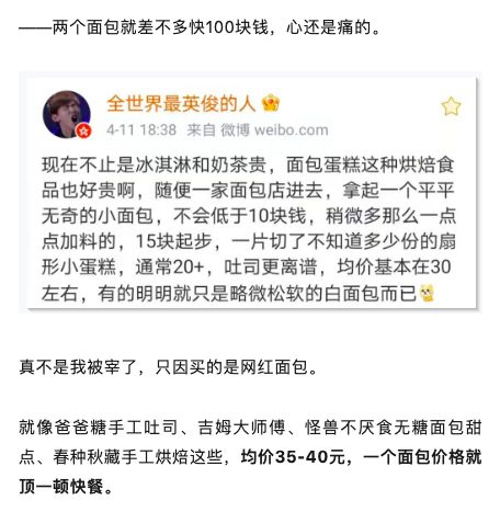 不过很多同行也反馈,近几年网红面包房的出现,对面包价格的提升也产生了最直接的冲击。