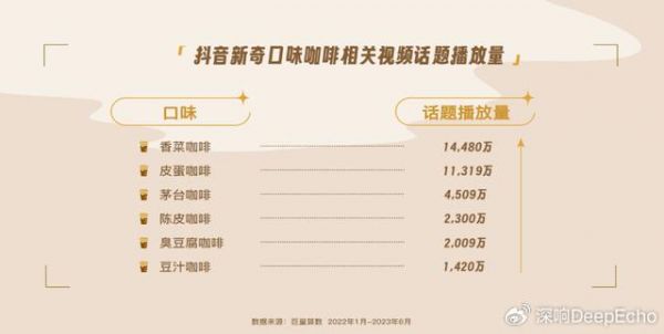 抖音新奇口味咖啡相关视频话题播放量 图源:算数学堂·「今日有咖·啡你不可」栏目