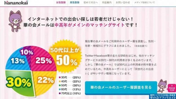 (日本一相亲网站截图,50岁以上老人占53%)