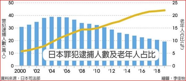 2020年,日本法务省发布的白皮书显示:日本65岁以上老人的犯罪率,已占22%;至于重复犯罪率,更是高达70%。