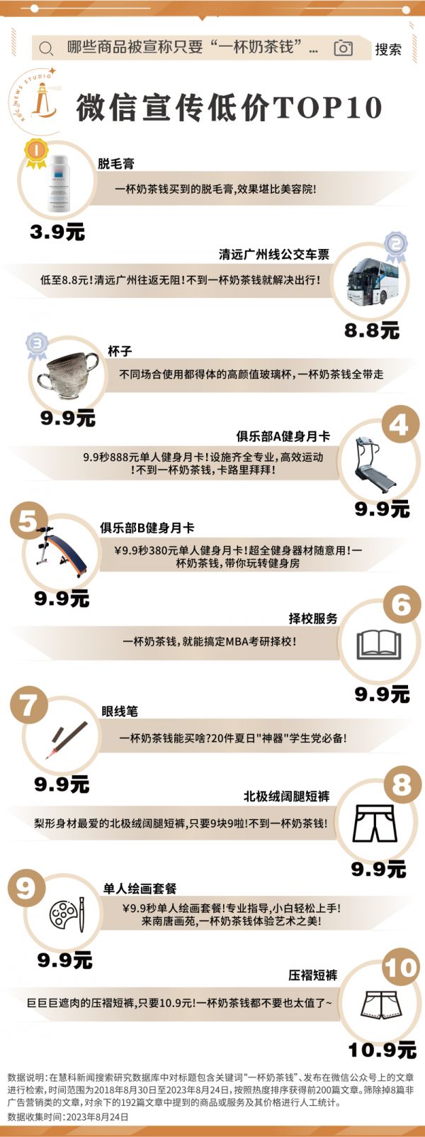 除了那一层情感意涵,奶茶也正在成为一种更为单纯的价格参照物——“只要一杯奶茶钱”的话术,正被广泛地用于营销。