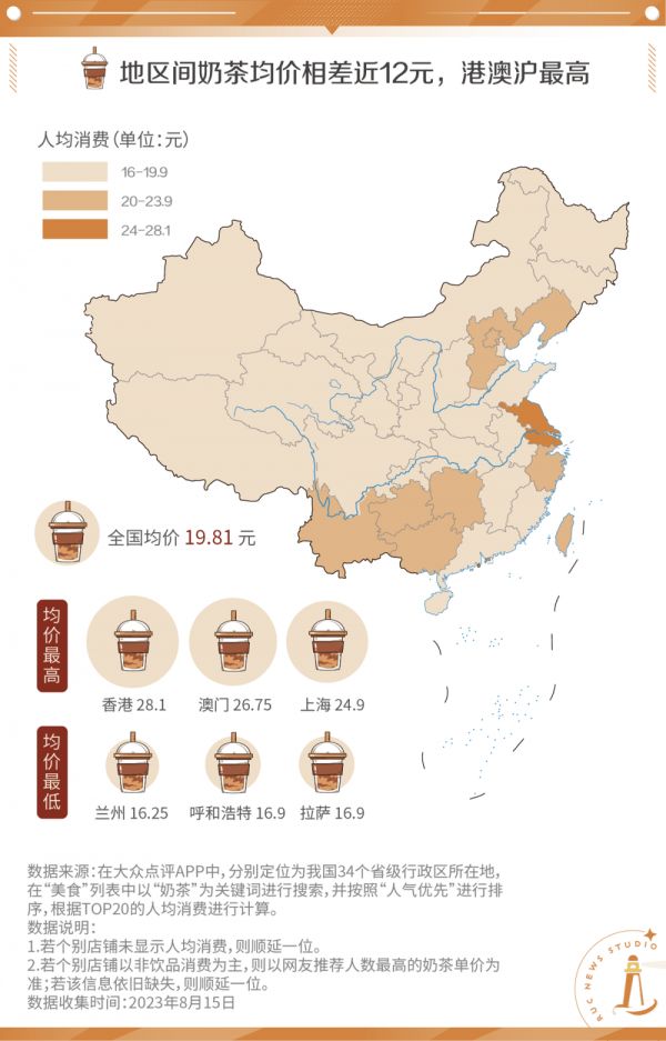 从总体来看,在中国,我们消费一杯奶茶的均价达到了19.81元。