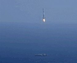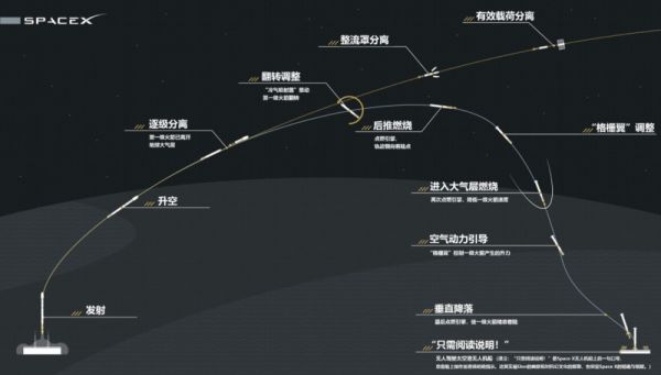 如果一切按计划进行,发射后约九分钟,火箭将在距离发射台200英里的海上浮动平台着陆: