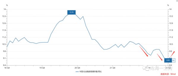 现在“认房认贷”被取消了,“银行——楼市”的资金链条被松绑,最直接的影响将是:社融增速将摆脱失速下滑的状态,逐步企稳回升。