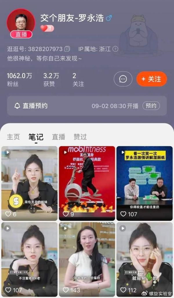 比如去年10月底入驻淘宝的交个朋友-罗永浩直播间,在去年11月10日,直播间粉丝数量就已经超过1000万人,但如今大半年的时间过去,粉丝量也仅停留在1060万左右。