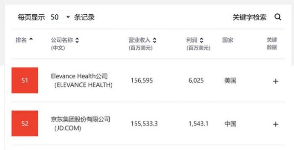 而京东集团凭借1475亿美元的营收成功取代华为,位居榜单第46名,成为了中国最大民营企业。