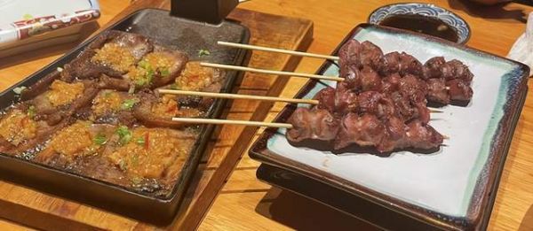 通常,我们点菜都是每个人报菜名,一个人负责在菜单上记下来再交给服务员。因为去的次数太多了,我几乎也不用看菜单了,就点自己的老几样,除了必点的牛肉串,还有鸡皮、鸡胗、牛蹄筋、牛舌等等。