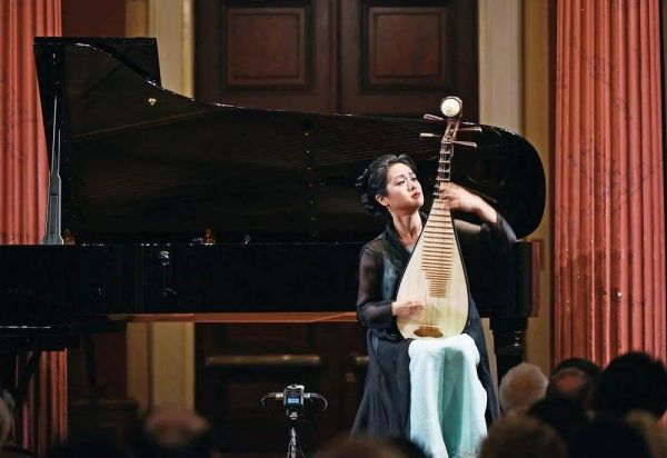 8月10日,“ 听见当代中国”——中国当代作曲家室内乐作品音乐会在奥地利首都维也纳上演,图为演奏者表演琵琶独奏《琵琶辞》 贺灿玲摄/环球杂志