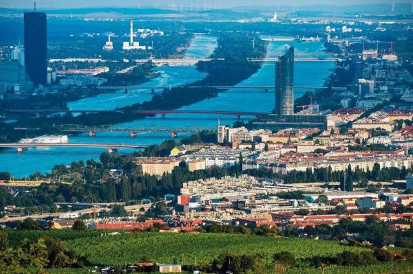 维也纳坐落在多瑙河畔,背靠阿尔卑斯山东北麓的维也纳林山,依山傍水的独特自然条件和当地人对环保的重视让维也纳成为“花园城市”的典范。