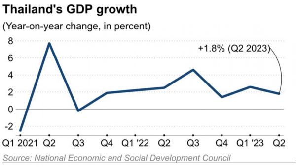 新政府上台的头等任务就是扭转经济颓势。2023年上半年泰国经济增长率为2%,其中第二季度仅增长1.8%。该季度出口额下跌了5.6%,农产品价格指数持续下跌,下跌幅度为5.4%,工业生产指数亦下跌4.1%,为连续第三个月下跌。