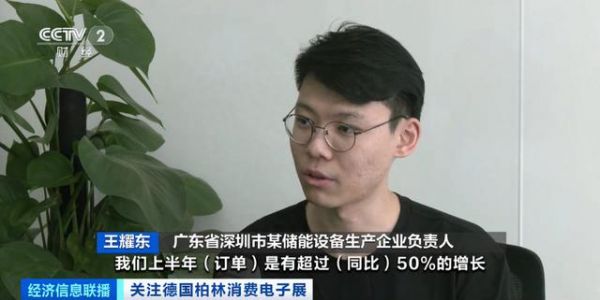 广东省深圳市某储能设备生产企业负责人 王耀东:在欧洲市场全渠道来看,我们上半年订单有超过同比50%的增长,在官网渠道有超过同比200%的增长。