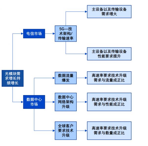 目前,光模块主要包括电信传输、数据中心两大核心应用场景。