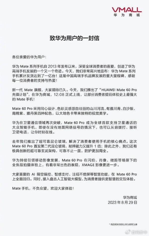 2023年8月29日,华为突然宣布其新款手机Mate 60系列已经开始在网上销售,这一消息让许多人感到措手不及。这次华为选择了一种非常不同的销售策略,即在新品发布会还没有开始之前就已经开始销售。这种策略无疑是大胆和创新的,也显示出华为对自己产品的自信。