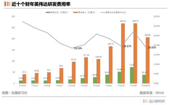 近十个财年英伟达研发费用率