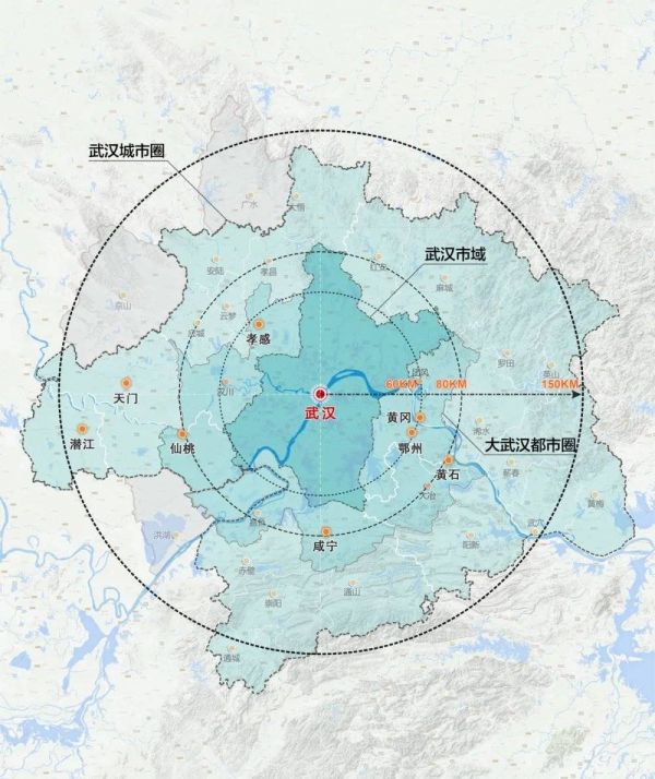 而作为强省会的三大代表之一的武汉,一度规划了“1+8”的超级都市圈,占据湖北省半壁江山,但在最终的国家级规划中,被瘦身为以“武鄂黄黄”为中心的中等圈层。