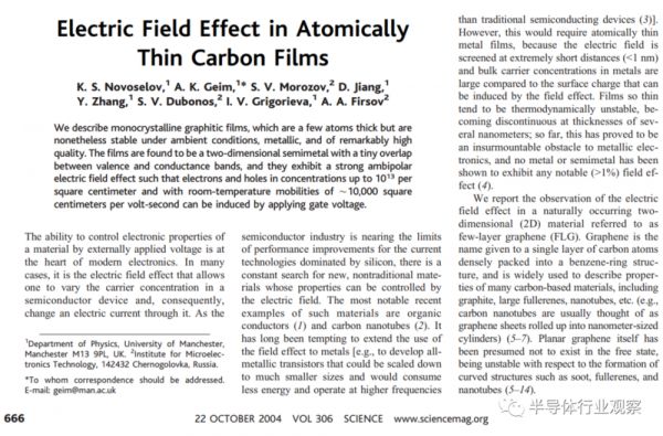 2004年10月发表在Science杂志上的石墨烯材料论文