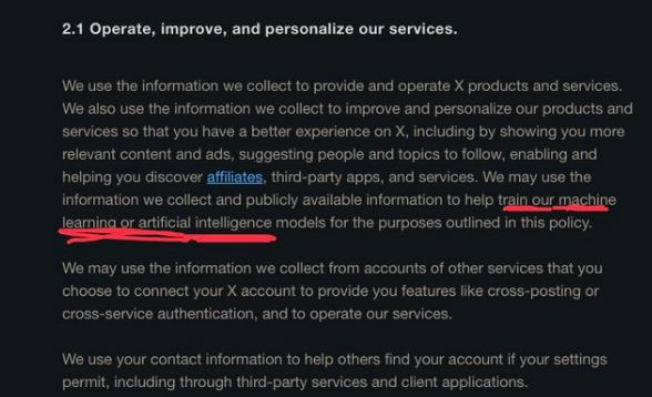 最近两天,X(原名Twitter,推特)突然更新了隐私政策,在2.1条例中,X明确写道: