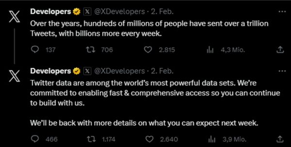 But what he is really saying is, "Come and publish interesting information exclusively on X so that we can use it for our subsidiary companies and train our models on it!".