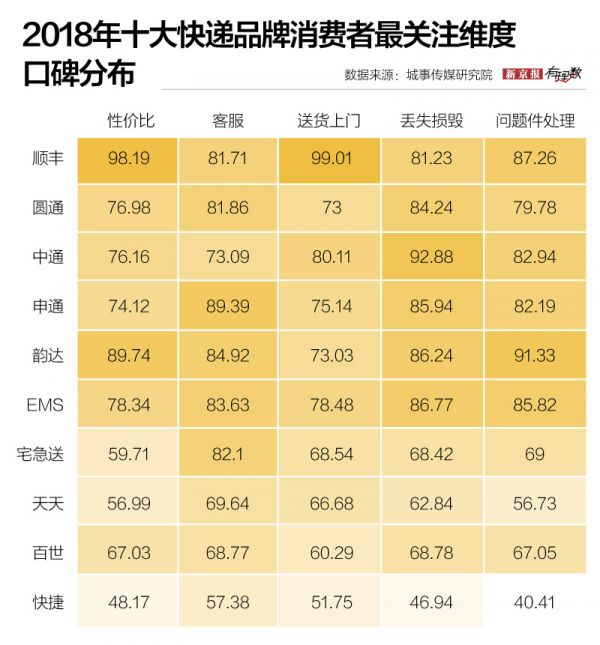 性价比、丢失损毁、问题件处理、送货上门、客服,这些都是消费者对于快递服务较为关心的问题,那么在这些问题里,哪家快递品牌又能赢得消费者的口碑和青睐呢?
