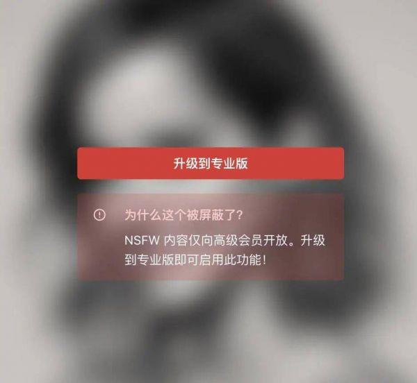 付费解锁界面,NSFW 意为“工作场所不宜”,一般指色情、暴力等内容