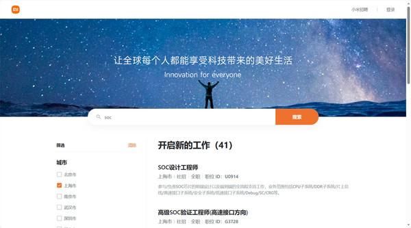 【手机中国新闻】近日,手机中国注意到,在小米公司官方的招聘网站上,出现了大量和自研SoC相关的职位招聘,包括SoC设计工程师、高级SoC验证工程师(高速接口方向)、高级SoC验证工程师(低功耗方向)、SoC验证工程师(总线方向)等等。