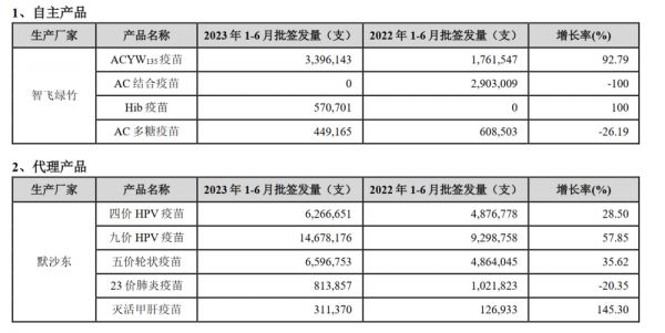 2023年上半年,智飞生物代理的默沙东疫苗批签发数据,图源丨智飞2023年上半年报告