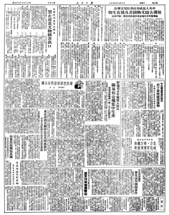 1950年7月8日,刊载于《人民日报》的《禁止珍贵文物图书出口》一文。