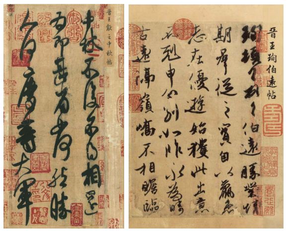 左为《中秋帖》局部,右为《伯远帖》,现均藏于北京故宫博物院。