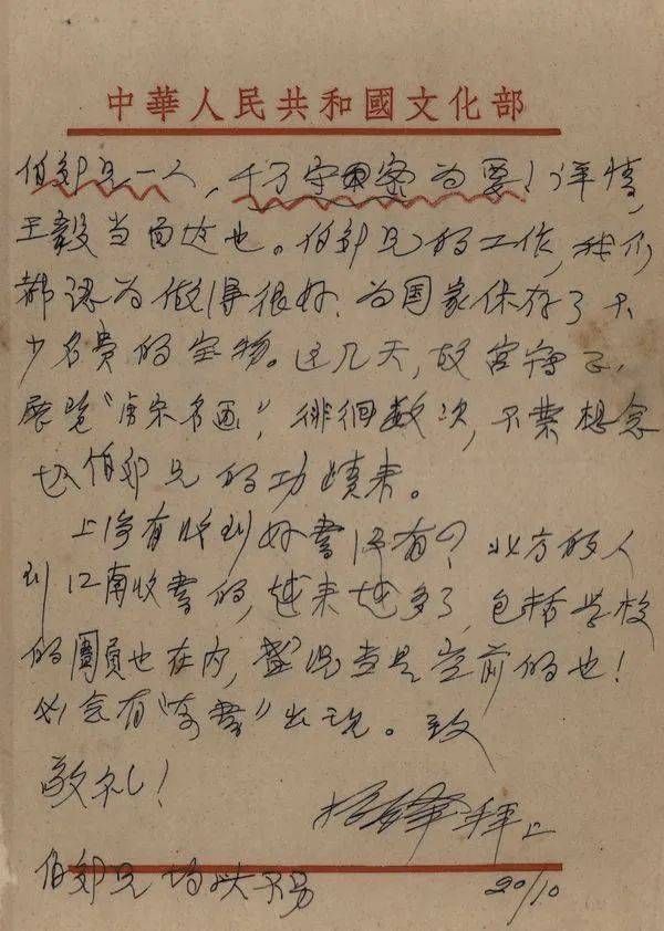 1956年10月20日,郑振铎致徐森玉函。