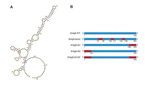 ▲长非编码RNA分子Snhg9的结构(图片来源:参考资料[2])