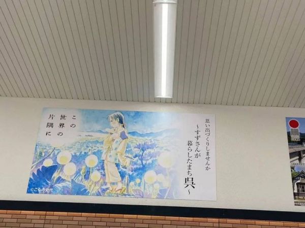 以战时的广岛作为背景的动画电影《在这世界的角落》的海报,在广岛的诸多景点随处可见。热爱画画、渴望着普通人的爱情的女主角小玲,在困惑与无能为力之中,眼看着自己的日常生活是如何被战争毁掉。在电影里可以看见她无私地帮助邻居,笨手笨脚地应付生活和婆媳关系,但是她也会为吴港中黑烟滚滚、耀武扬威的战列舰感到骄傲,甚至在听到裕仁天皇的终战宣言时歇斯底里喊道“为什么不战斗到底?”