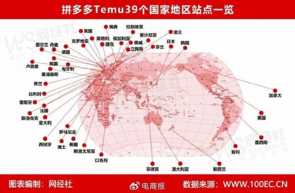 另一个值得关注的要点,是拼多多的海外扩张。自去年9月上线以来,拼多多Temu现已进入39个国家地区,覆盖亚洲、欧洲、北美、南美及大洋洲等。