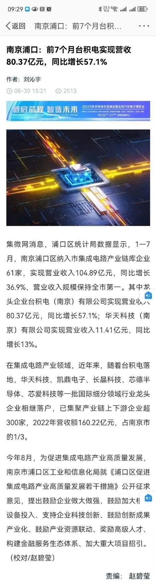 在这个时间我们看到另外一条新闻,今年前7个月,台积电南京厂营收大增57.1%。这就是说,在台积电营收下降的大格局,台积电南京靠了地利优势,在中国大陆大量抢占市场,压制大陆的芯片企业,为台积电母公司贡献收入和利润。