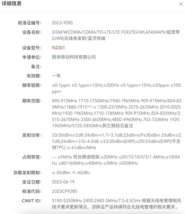 蔚来手机通过工信部无线电核准:配备UWB,有望下半年发布