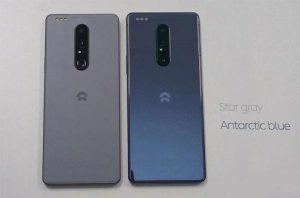 图源:安兔兔从目前网上已经曝光的图片来看,蔚来手机看起来有些“索里索气”,整机的造型类似于索尼初代Xperia 1,后置镜头模组采用竖排三摄的设计,至少会有水泥灰和渐变蓝两个配色,在手机的背部左上角有十分明显的三个金属触点,应该是用来和蔚来汽车进行交互使用。