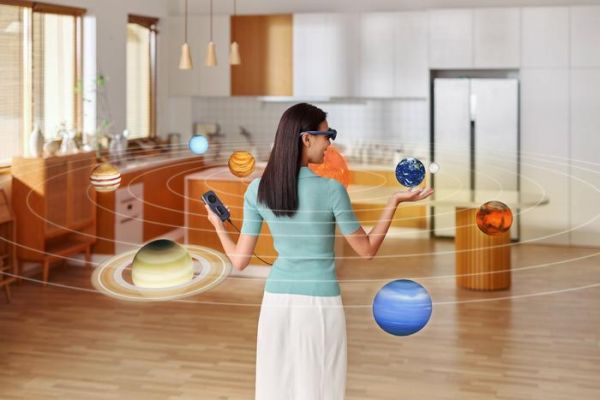 交互方式上,只用眼睛、手势和声音,就能实现实时操控;无论在哪里,每一寸空间都可以成为你的屏幕,并且是多个屏幕。