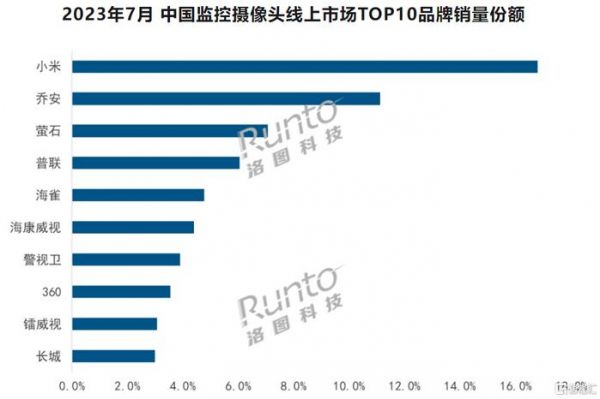 7月监控摄像头线上市场销量大涨近37%!小米遥遥领先