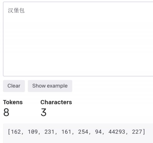 拿“hamburger”对应的中文“汉堡包”来说,这三个汉字被计作8个token,也就是被分解成了8部分。