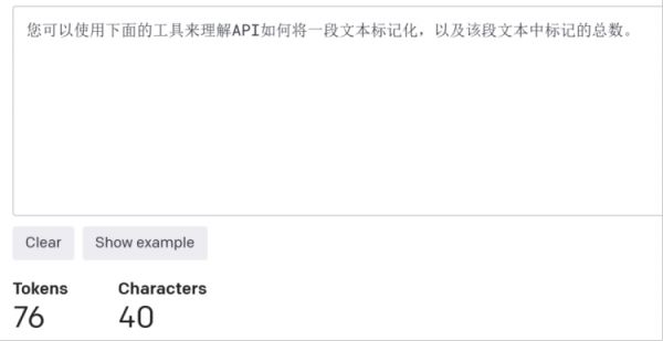 对应的中文为:您可以使用下面的工具来理解API如何将一段文本标记化,以及该段文本中标记的总数。共计76token。