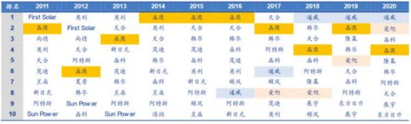 (图表:光伏电池片排名变化(2011-2020);来源:本翼资本)