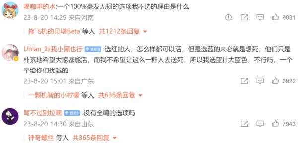 而选蓝色的则将蓝色等同于利他和奉献,认为红色只是用所谓理性的策略掩盖自己自私的本质。